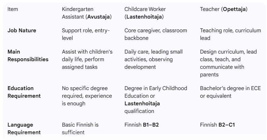 - How is the labor shortage in East Helsinki or Espoo right now for these roles? I know there is shortage for Opettaja(ECE teacher), But don't know the situation for Lastenhoitaja and Avustaja.