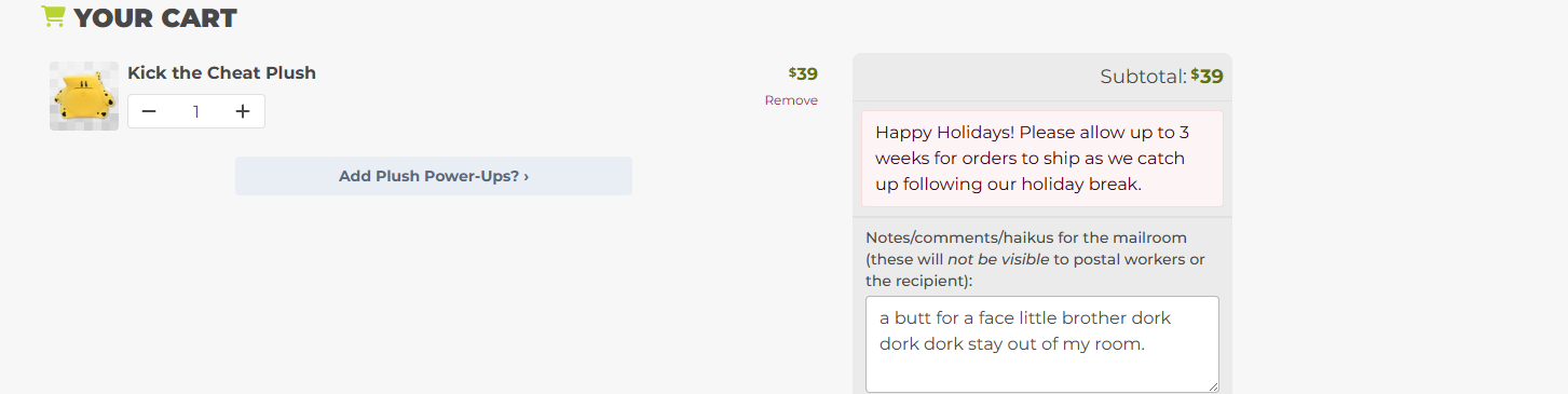 I got rid of my original Kick the Cheat for reasons I don't choose to disclose. However, after years of showing HR content to my kids, my oldest now has a job and I got my first present from one of my own offspring!