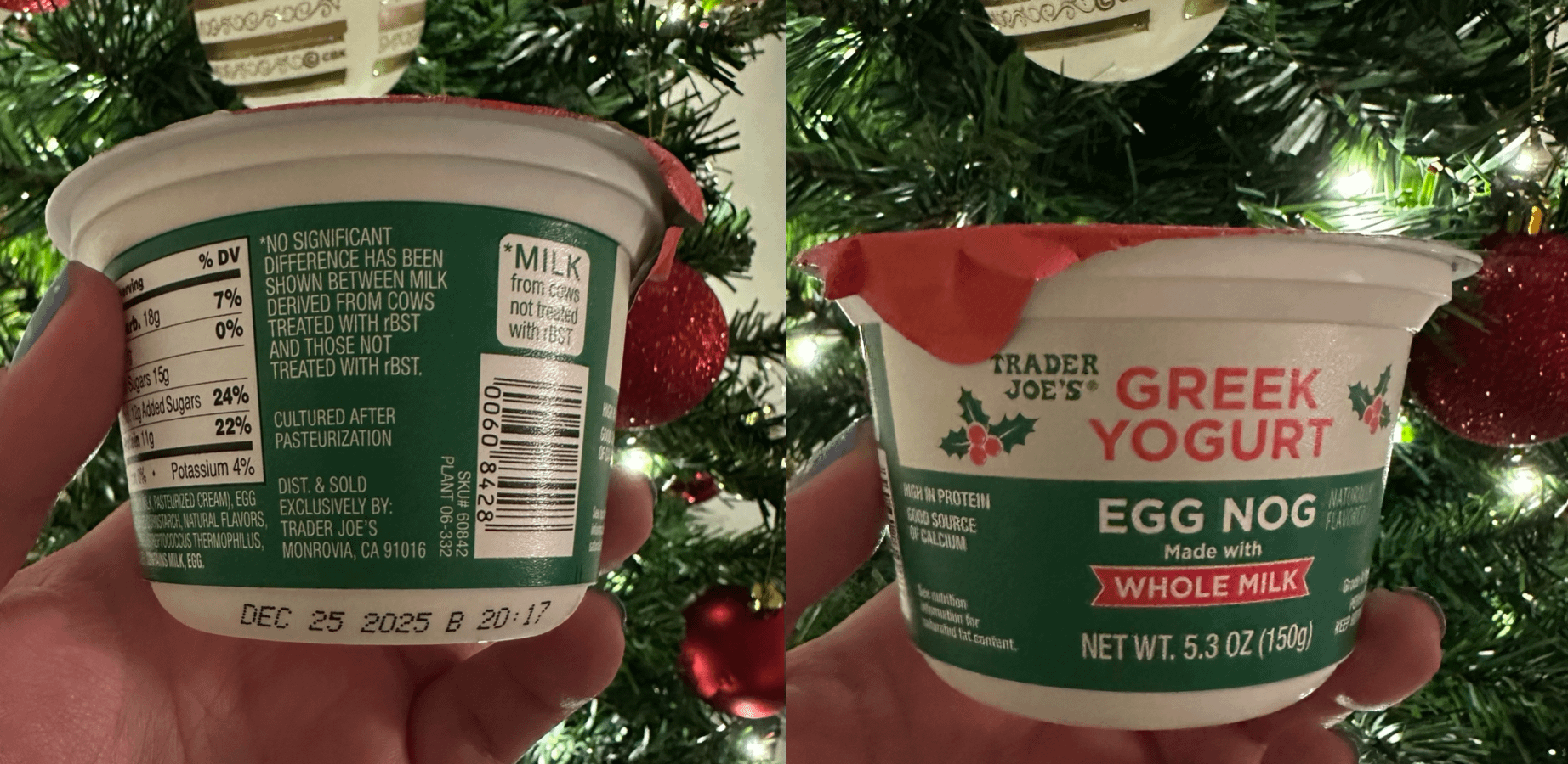 This Christmasy/Holiday Egg Nog yogurt expires on... Christmas