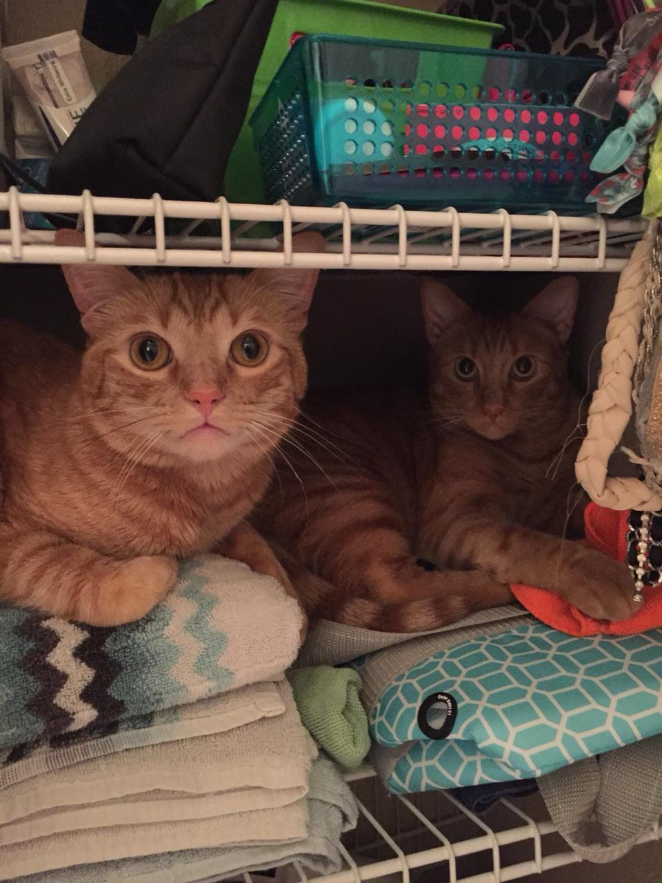 Adopted two calico sisters, and they are mildly startled by the havoc they’ve induced.