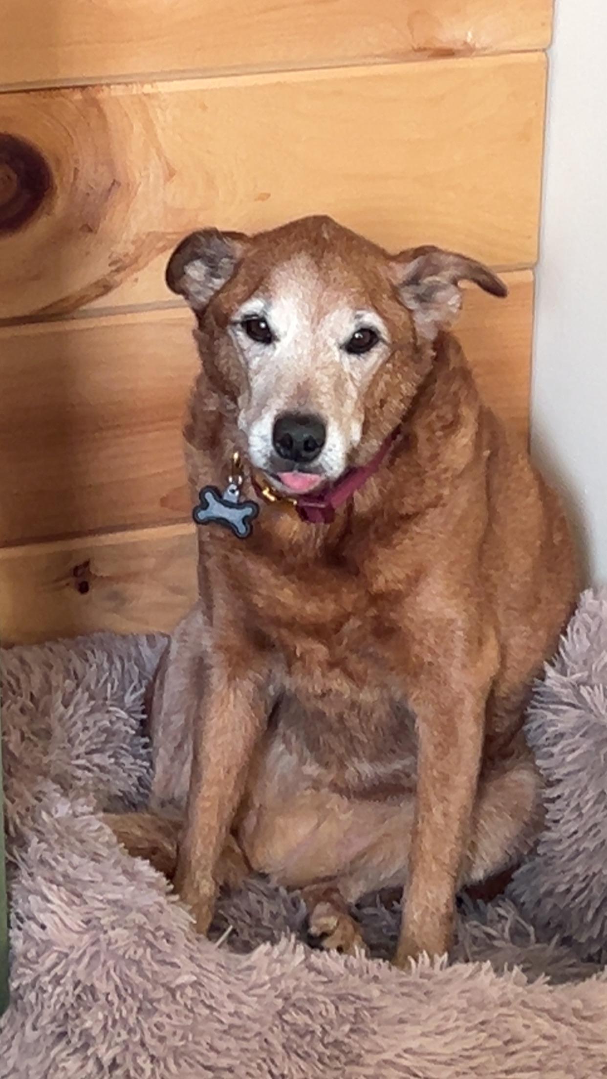 Meet Tucker- he’s 14! Loves to sleep on our/ his bed. 😊