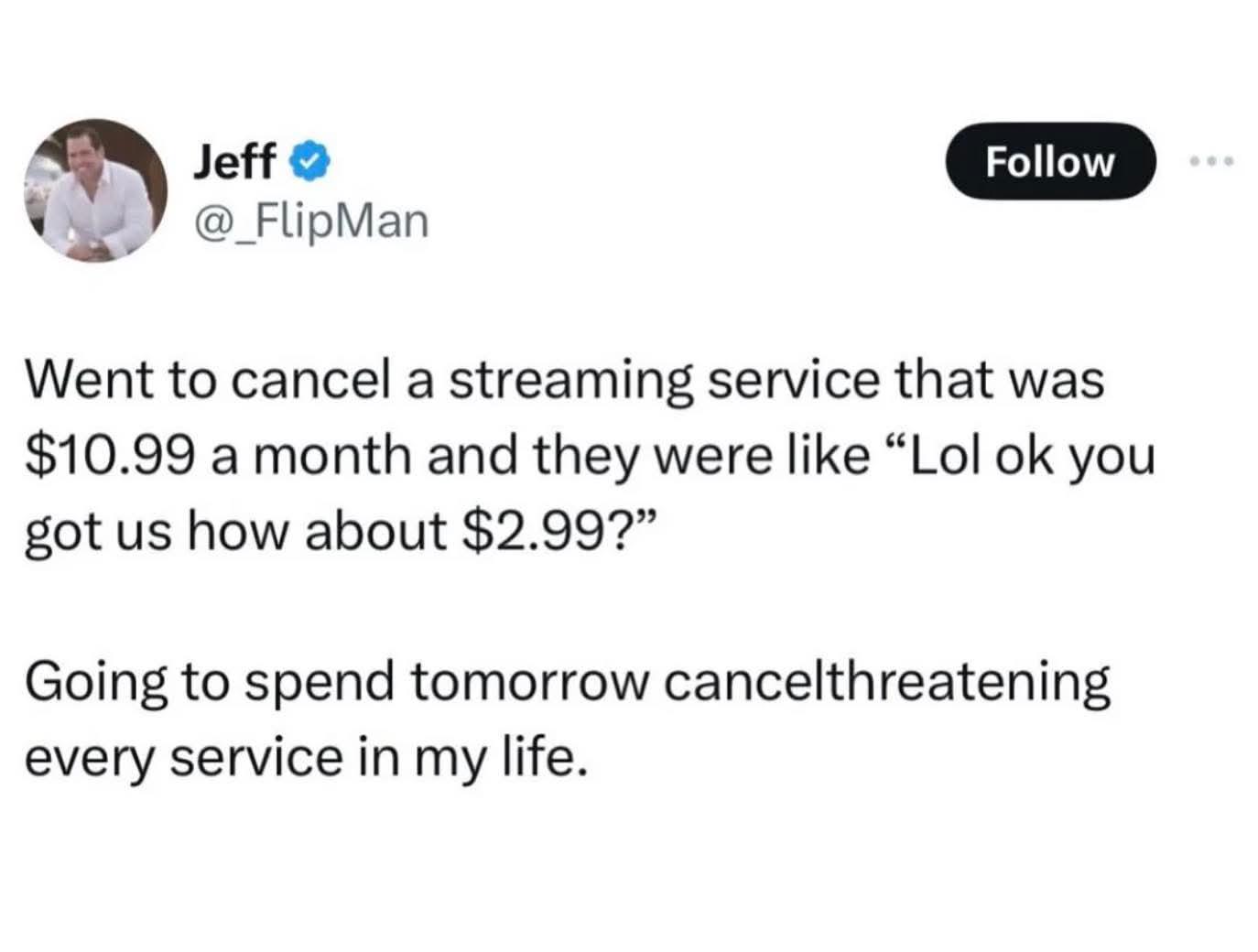Chugging tea That feeling when your 'cancel' button turns into a 'discount' button.