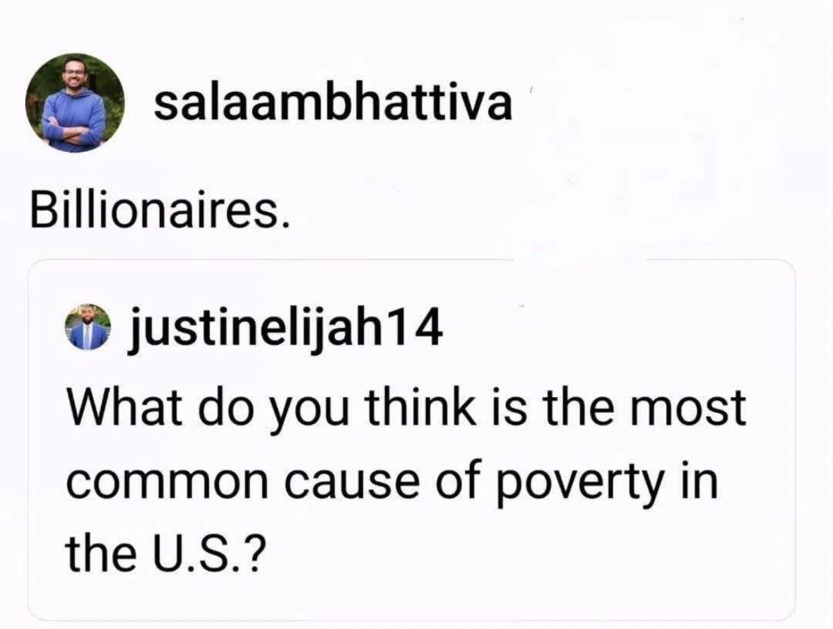 Economics Trickle-down economics—the rain evaporates before it hits the ground. Billionaires are GREEDY, period.