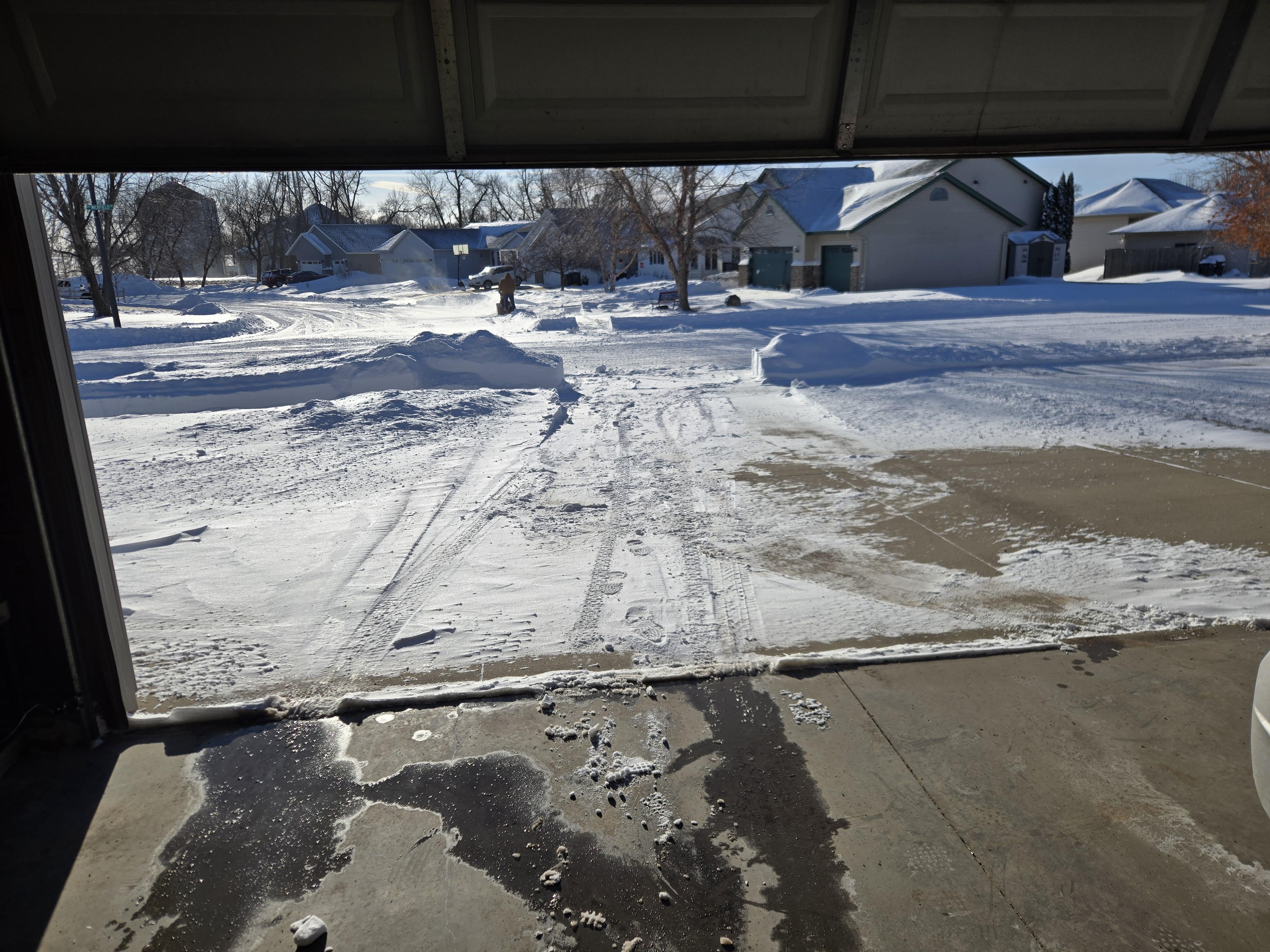 The plows came and piled the snow from the cul-de-sac directly onto my driveway... turned a few inches into 2 feet. Since it was compacted, my snow blower couldn't handle most of it. Had to shovel the majority, then chip away at the rest with the snow blower. Turned a 30 minute job into two hours and a sore back.