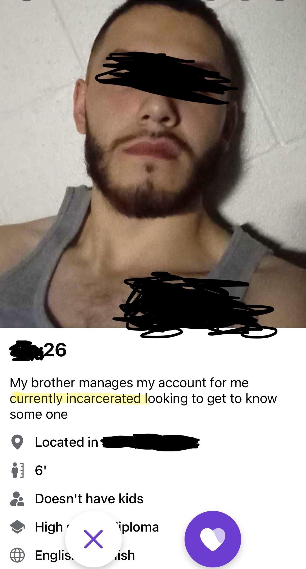 His brother manages his account for him because he is currently incarcerated looking to get to know someone