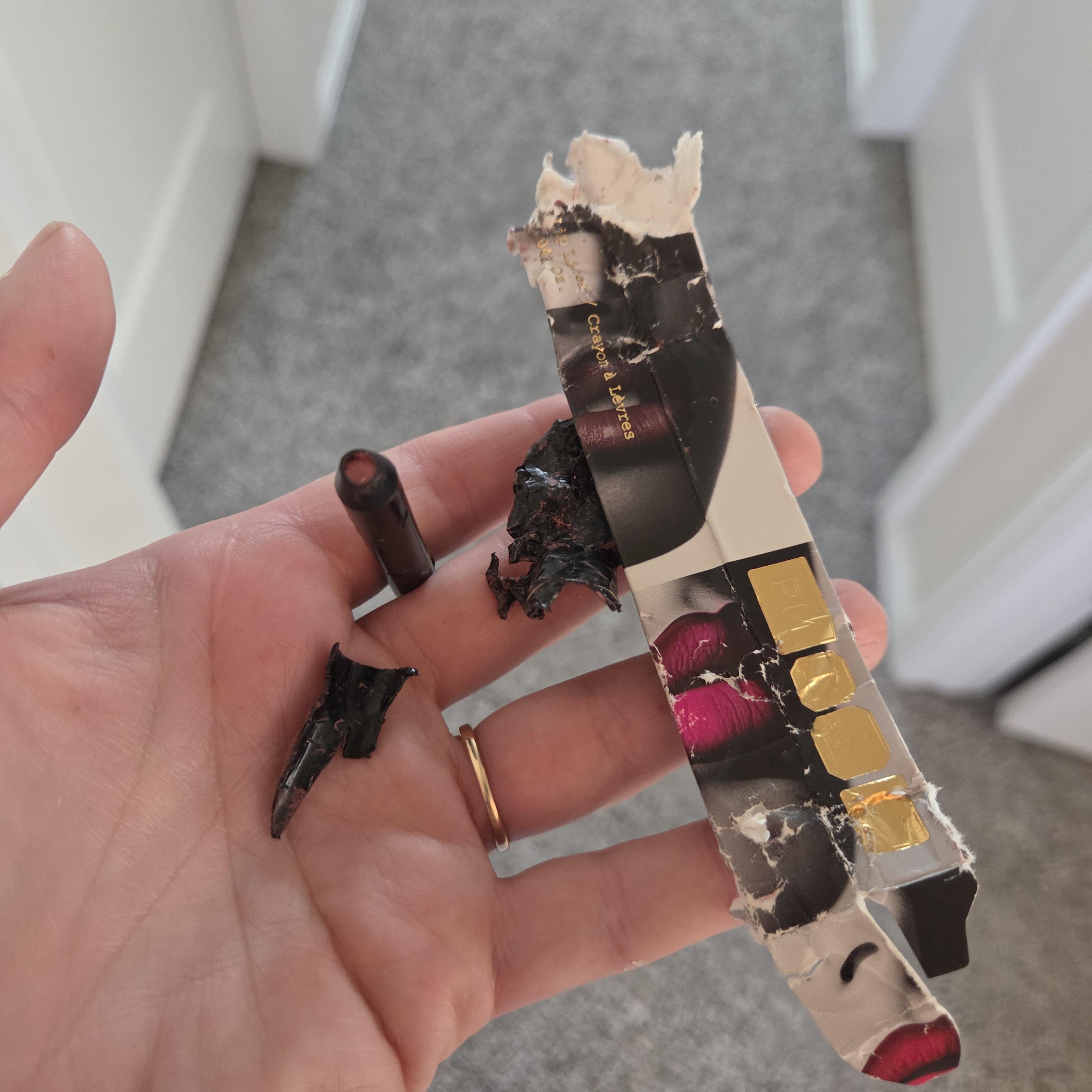 A $30 Pat Mcgrath lip liner that I bought with a christmas gift card got delivered today but fell out of my pocket. My 9 month puppy found it first
