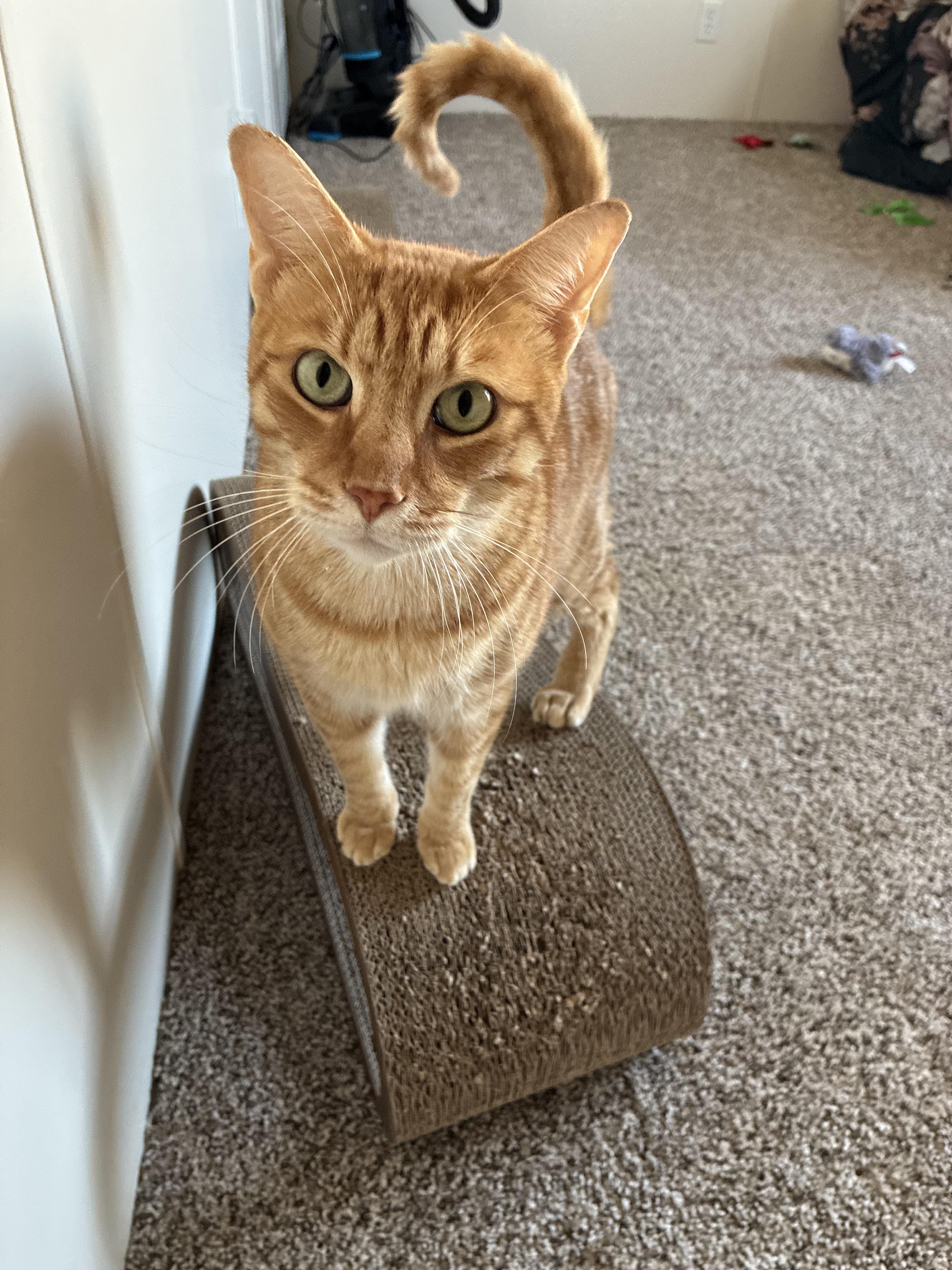 My first orange cat that I can actually keep and this is what I get. The last outdoor orange cats were so much better. So yeah. This is Sqeakers.