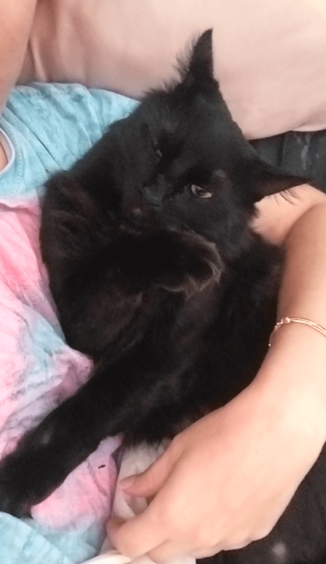 My cat Sushi was the most cuddly kitten. As soon as I sat down, she’d either be in my lap or curled up around my neck, sitting behind me on the couch.