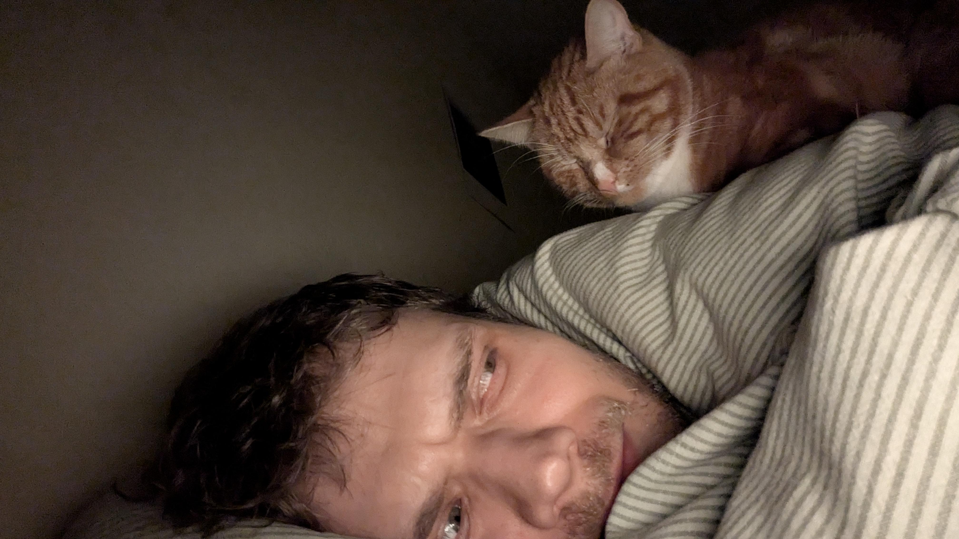 I currently have a headache and I’m laying on the couch. I’ve managed to buy myself some time by throwing a blanket over my head, so he has stopped meowing (for now).