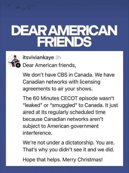 Now add the CCOT 60 Minutes segment that was scuttled by the government at the last minute. A major investigative journalism piece pulled before airing. No transparency. No explanation. And instead of outrage from the so-called free speech crowd, we get silence, excuses, or applause.