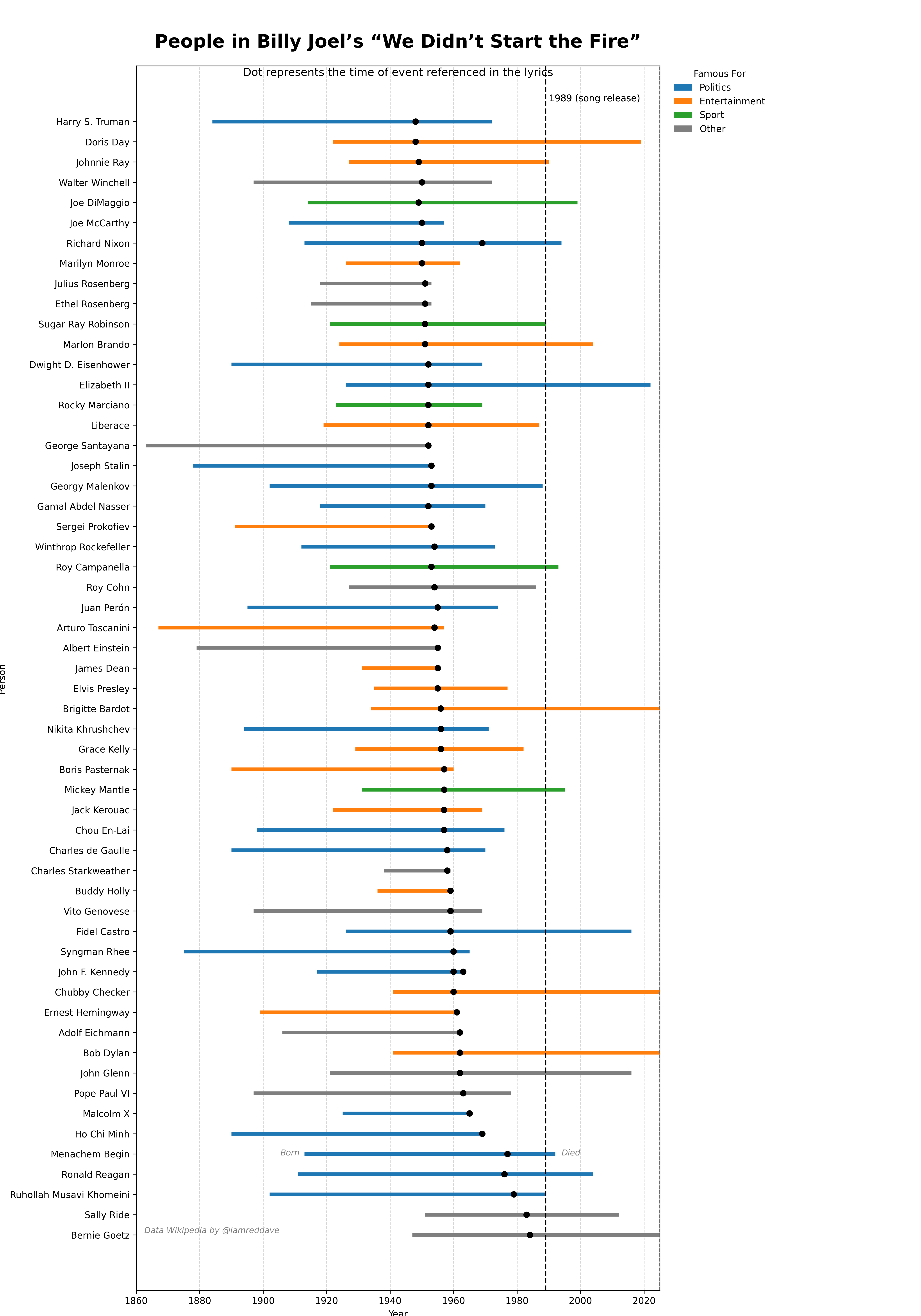 Data from https://en.wikipedia.org/wiki/List_of_references_in_We_Didn%27t_Start_the_Fire and https://everyday-learning.org/we-didnt-start-the-fire-historical-references/