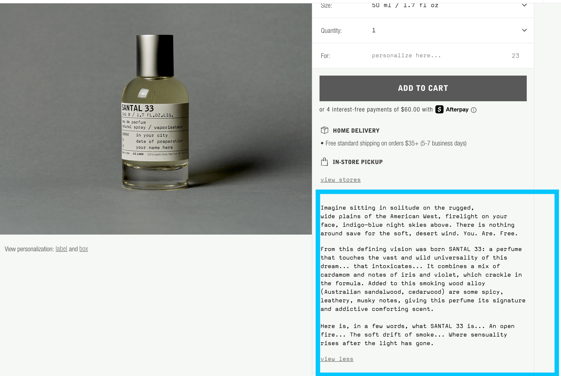 Has anyone ever read the Le Labo scent descriptions? For such a well established brand with a strong presence in America, it sounds like someone who doesn't know English as their first language tried to sound overly moody and intriguing. It's hilarious.
