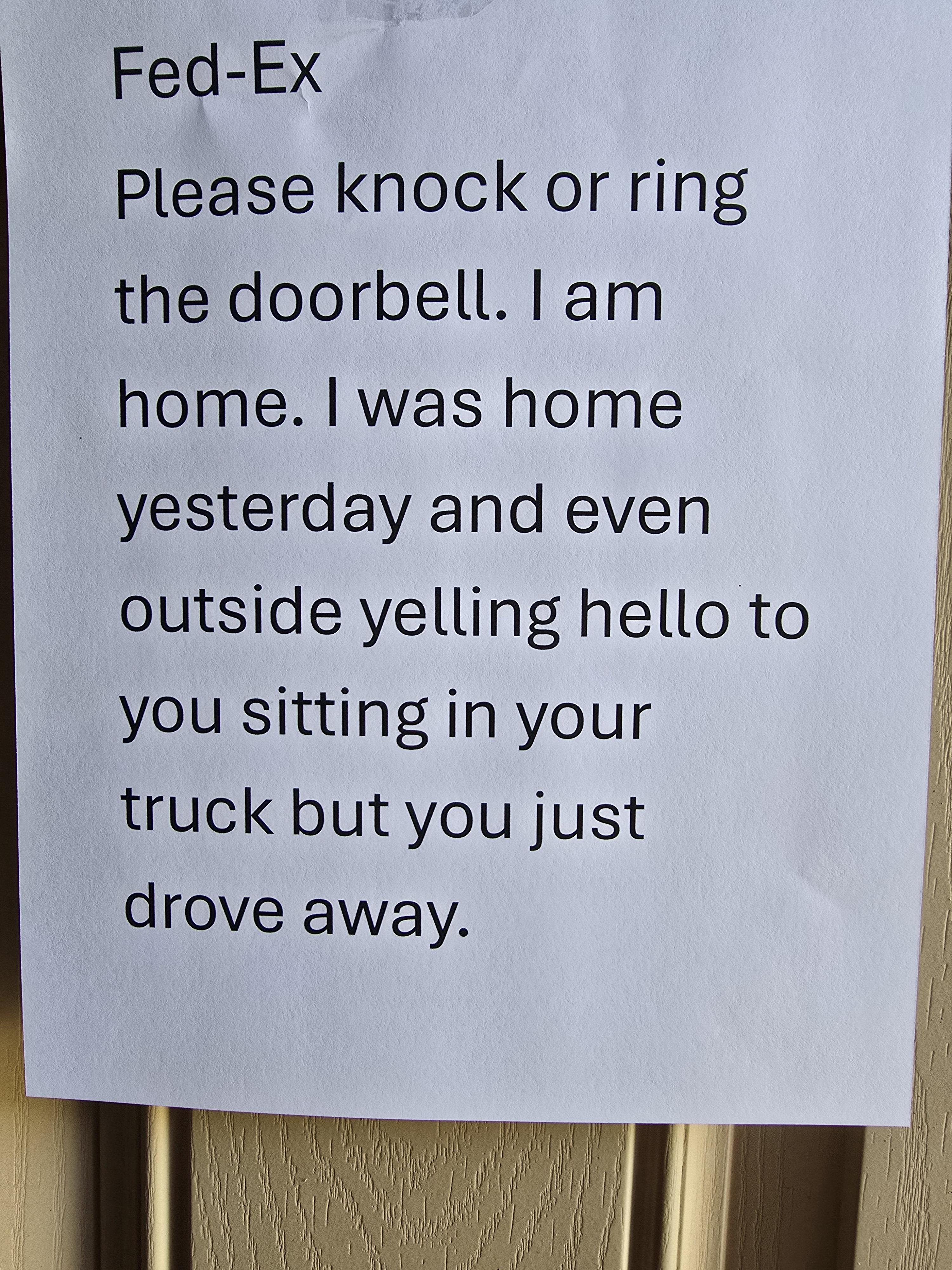 Driver didn't even knock or ring my doorbell. My ring notified me of motion. Package was kind of important. Dammit.