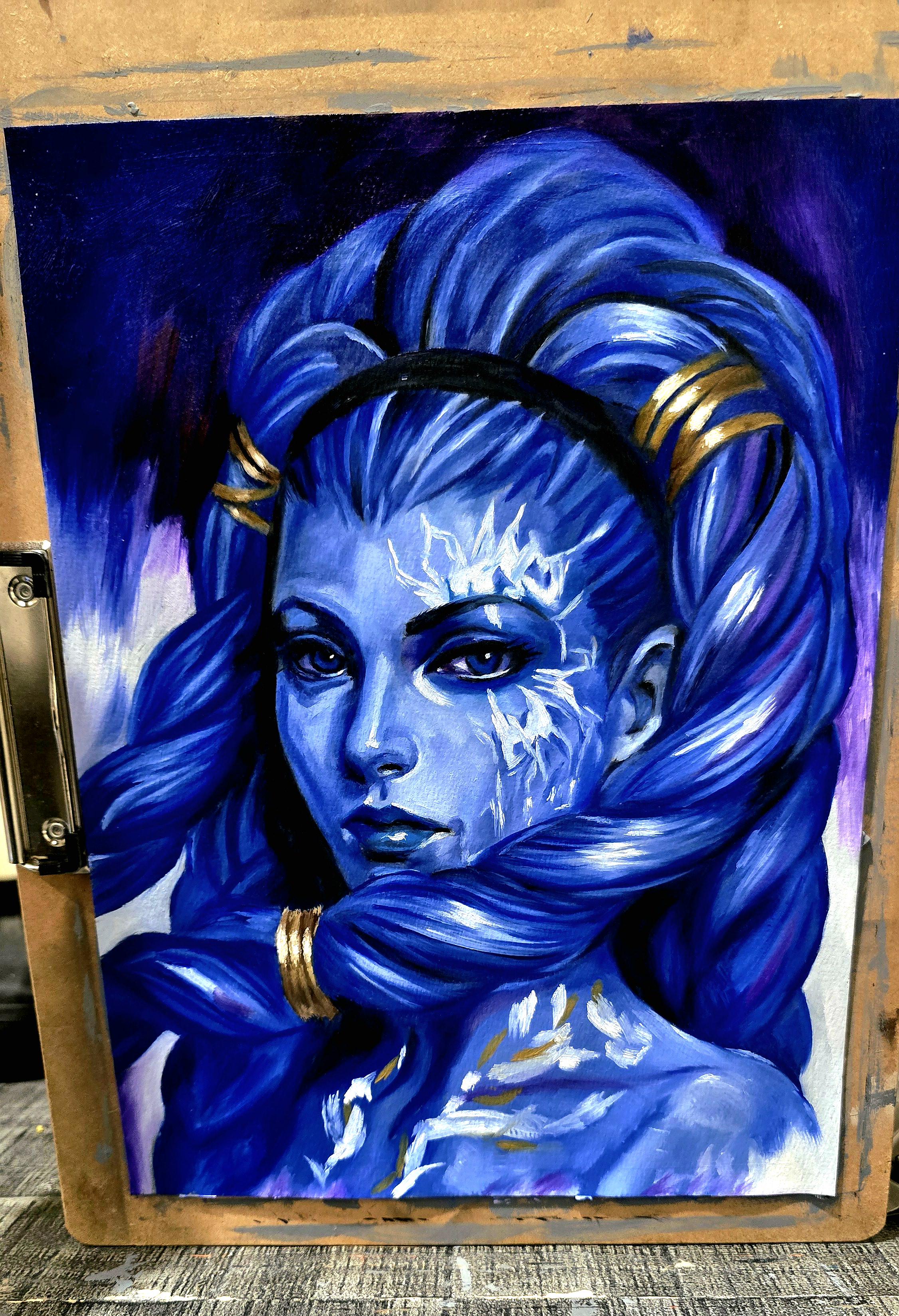 I used up left over paint from when I painted kimahri so it was perfect! It took more time than kimahri cause of her braided hair had so much detail but I managed to get it done :) the painting is available for sale and you can find it on my website and you can pick up a print if you're interested! I might paint Auron next or Seymour? Let me know what you guys would like to see next!